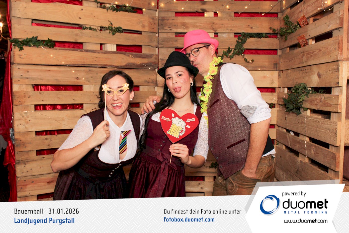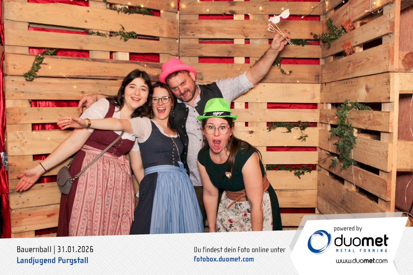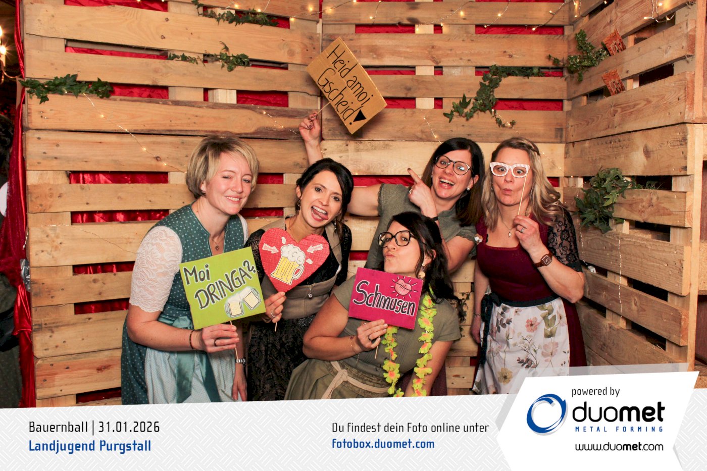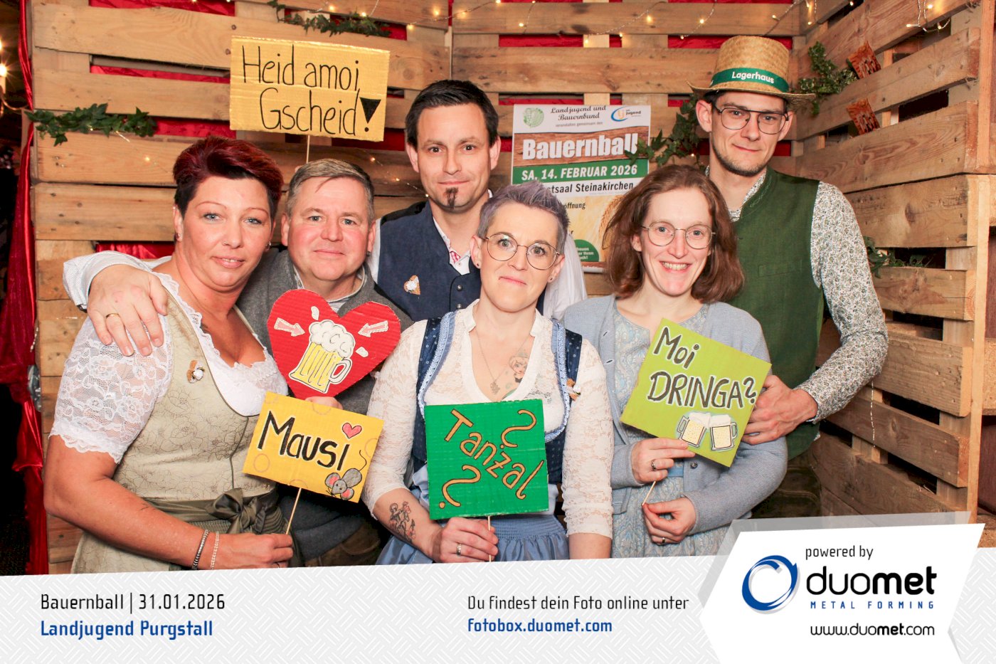 Heid amoi gscheid! Zum 77. Mal lud die Landjugend Purgstall gemeinsam mit der Volkstanzgruppe am 31. Jänner 2026 zum Tanz. Die „Gasgeber“ sorgten für beste Stimmung auf der Tanzfläche, die einstudierte Mitternachtseinlage war das Highlight des Abends. Zwischen Tanzen und Feiern war unsere Fotobox der perfekte Treffpunkt für lustige Schnappschüsse, gemeinsame Ballmomente und bleibende Erinnerungen.