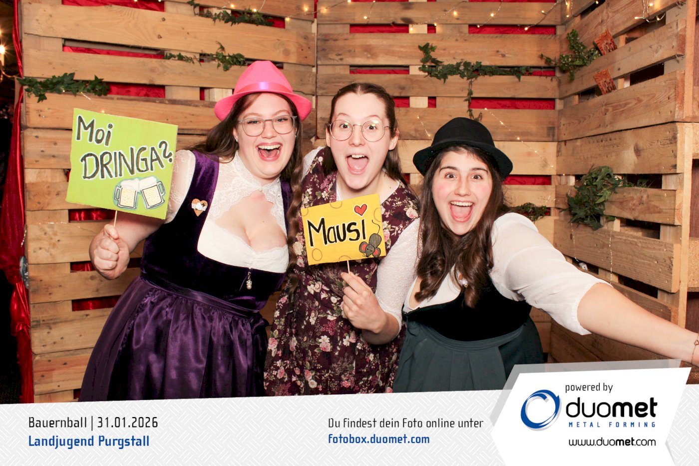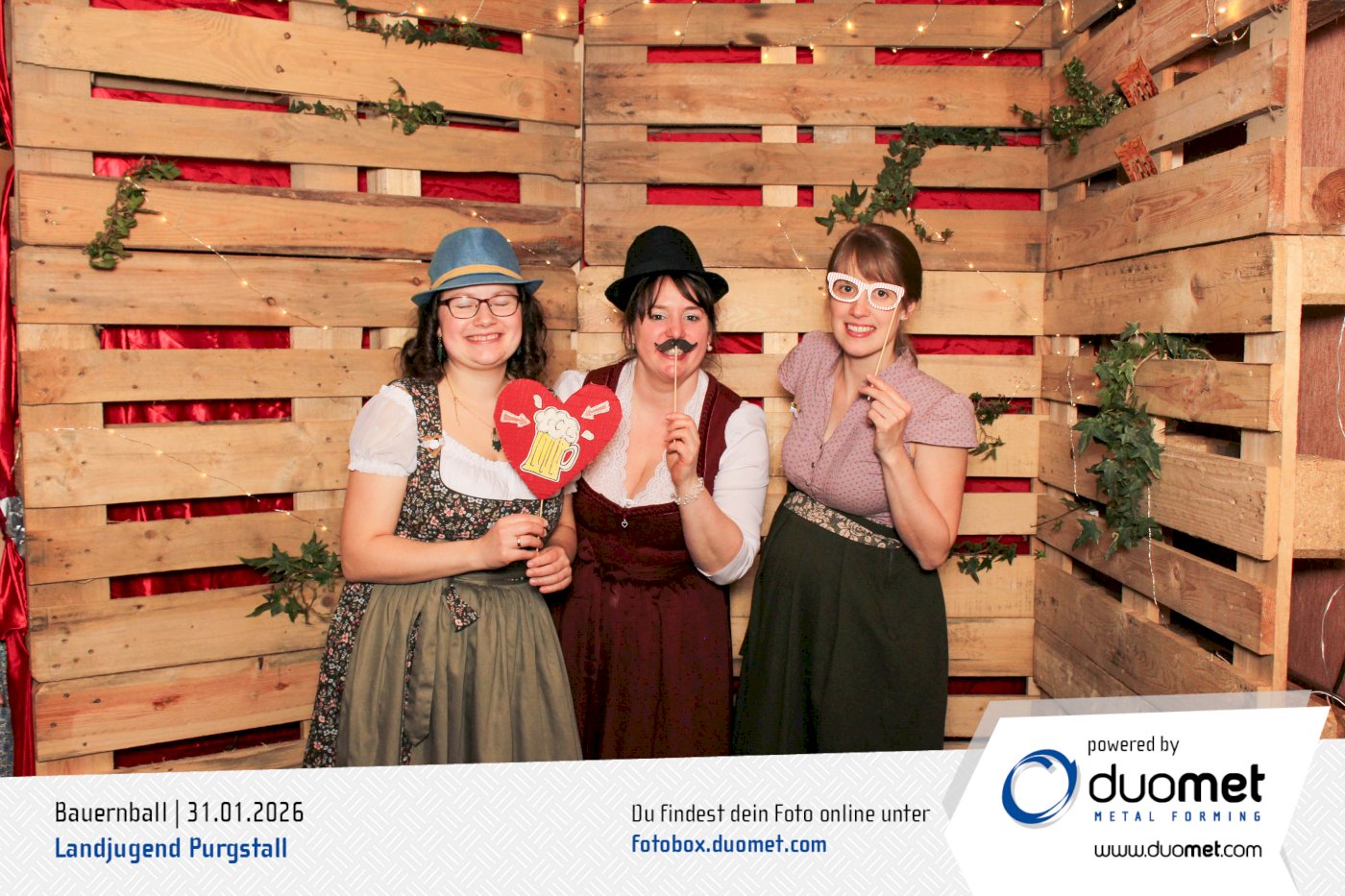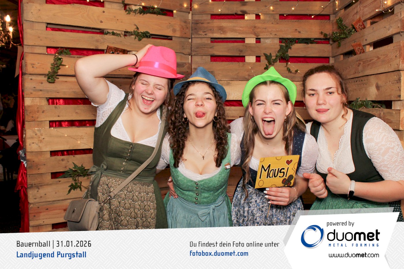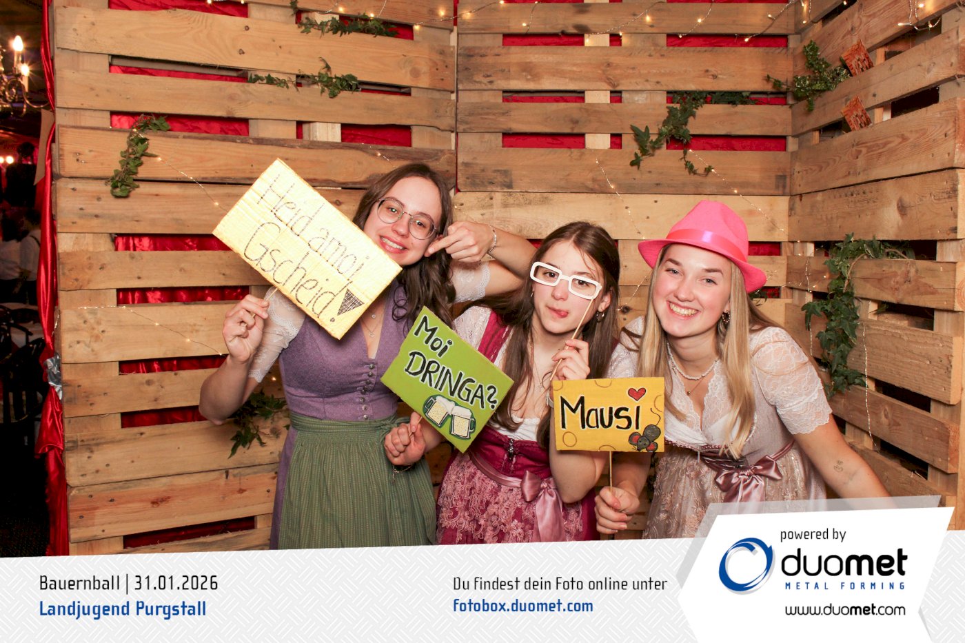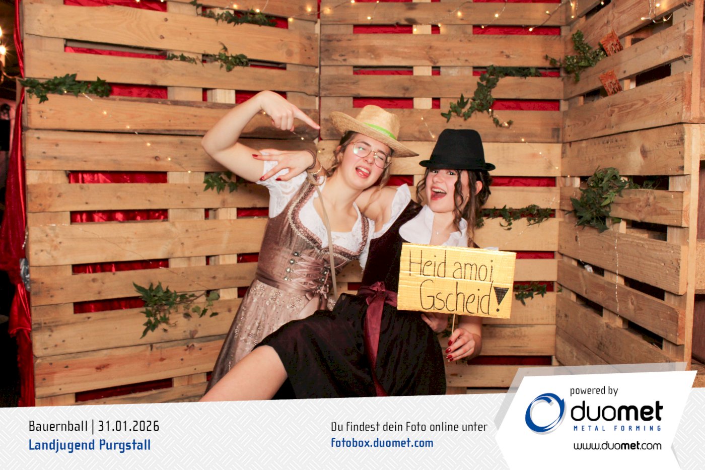 Heid amoi gscheid! Zum 77. Mal lud die Landjugend Purgstall gemeinsam mit der Volkstanzgruppe am 31. Jänner 2026 zum Tanz. Die „Gasgeber“ sorgten für beste Stimmung auf der Tanzfläche, die einstudierte Mitternachtseinlage war das Highlight des Abends. Zwischen Tanzen und Feiern war unsere Fotobox der perfekte Treffpunkt für lustige Schnappschüsse, gemeinsame Ballmomente und bleibende Erinnerungen.